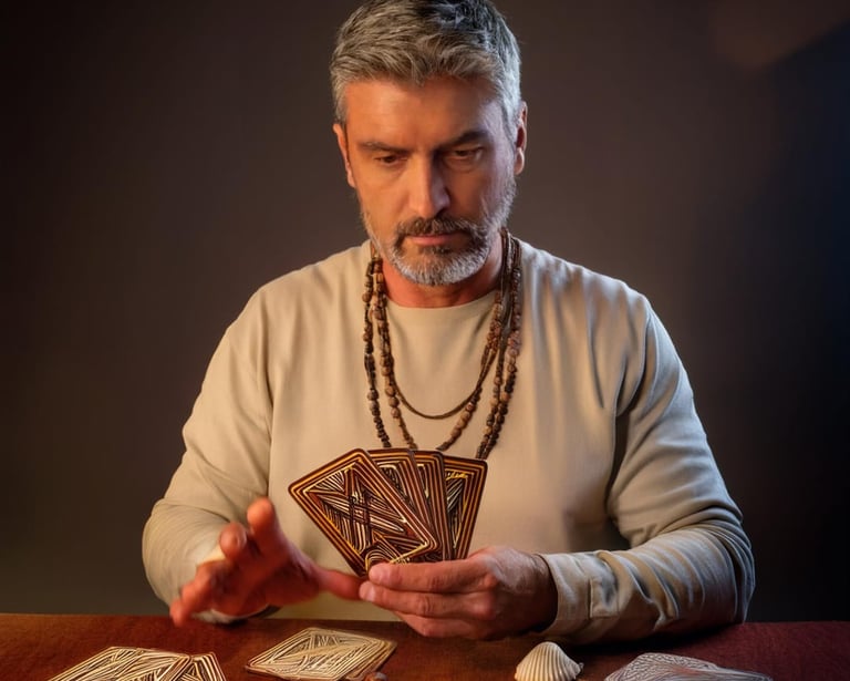 Com décadas de experiência, Pai Pedro é um especialista em Tarot de Marselha, Tarot de Thoth e Rider Wait. Essas práticas fazem parte de diversas tradições espirituais e culturais, sendo amplamente utilizadas para questões de amor, autoconhecimento, orientação espiritual e leituras de sorte. Cada método possui suas particularidades e oferece uma visão única sobre o destino e os caminhos da vida.