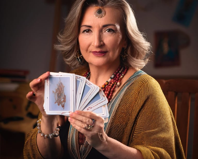 De etnia Cigana, Carmen se especializa no Baralho Cigano, utilizando essa poderosa ferramenta, cheia de simbolismo, para oferecer esclarecimentos sobre questões amorosas e financeiras. O Baralho Cigano é altamente valorizado por sua capacidade de trazer percepções profundas sobre a vida do consulente.